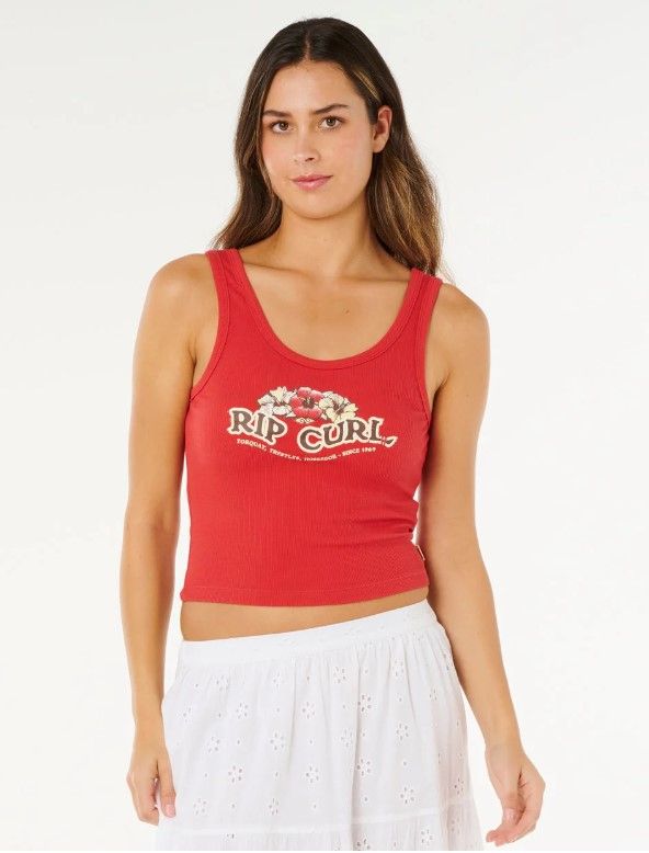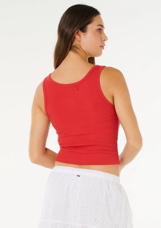 Le débardeur Bells Tank mise sur un style relax avec jersey coton côtelé stone wash et imprimé avant, complété par étiquette tissée pour une allure côtière.