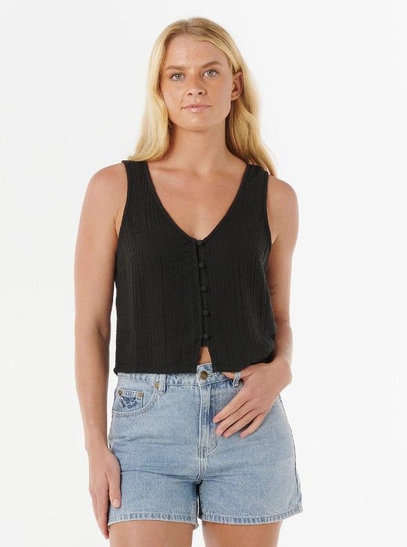 Le top Premium Surf est votre allié des journées ensoleillées avec sa gaze de coton douce et sa coupe débardeur. Boutons devant et logo discret pour un look facile à associer.