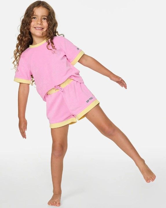 Le short Epic Terry – Kids mise sur un style fun avec tissu éponge doux et broderies aléatoires, parfait pour des journées côtières décontractées.